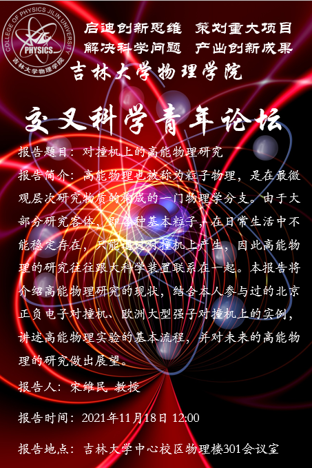 高能物理也被称为粒子物理,是在最微观层次研究物质的构成的一门物理学分支。由于大部分研究客体,即各种基本粒子,在日常生活中不能稳定存在,只能通过对撞机上产生,因此高能物理的研究往往跟大科学装置联系在一起。本报告将介绍高能物理研究的现状,结合本人参与过的北京正负电子对撞机、欧洲大型强子对撞机上的实例,讲述高能物理实验的基本流程,并对未来的高能物理的研究做出展望。
