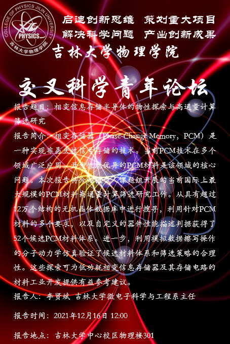 报告题目: 相变信息存储半导体的物性探索与高通量计算筛选研究