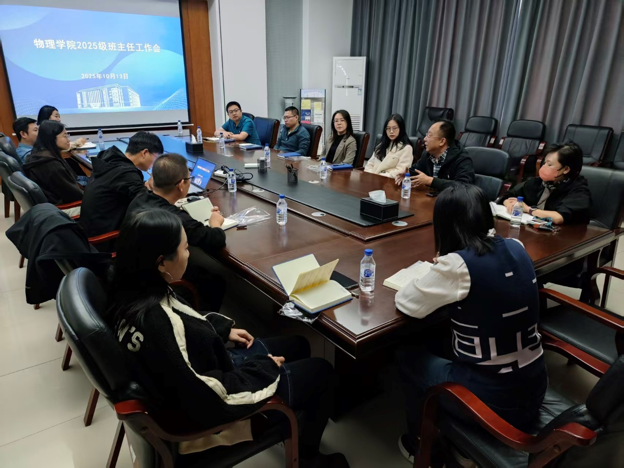 为全面贯彻“立德树人”根本任务,切实加强本科生班主任队伍建设,提升人才培养质量,英国威廉希尔公司官网于10月13日中午在物理楼301会议室召开了2025级新生班主任工作会议。英国威廉希尔公司官网副院长王鑫、党委副书记杨讴菡、全体2025级新生班主任及本科生教学办公室、本科生学生工作办公室成员参加了本次会议。