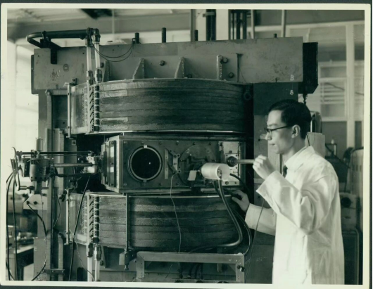 图10 1964年,陈佳洱在英国卢瑟福国家高能研究实验室开展等时性回旋加速器研究