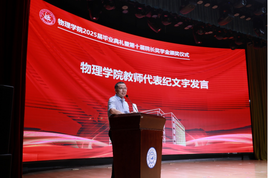 院长邹勃做了题为 “逐光而行,于压力之下觅华光”的致辞,成为典礼的亮点与高潮。他巧妙运用物理学概念“压强诱导发光”作喻,寄语毕业生:“如同特定材料在压力下内部结构重组、电子跃迁,从而激发出前所未有的光芒,人生亦是如此。步入社会,压力如影随形——初入职场的挑战、人际网络的构建、理想征途上的质疑,都可能成为重负。然而,压力恰是激发内在潜能、点燃生命之光的契机。”