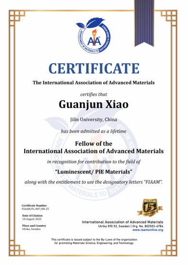 国际先进材料学会(IAAM)是全球先进材料领域著名国际性学术组织,总部设在瑞典,致力于为先进材料科学、工程和技术在世界范围内的快速发展提供高水平学术平台,现已发展成为材料科学领域各类学科领军人才的聚集地,目前拥有来自超过150个国家的10万多名会员。IAAM“终身会士”是全球范围内授予在材料科学、工程和技术领域做出独创性且重要贡献科研人员的殊荣,评选通过专家提名、学术委员评审、学术演讲等环节遴选产生。
