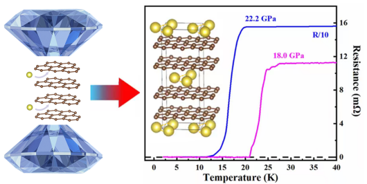 近日,英国威廉希尔公司官网高压与超硬材料全国重点实验室王洪波教授等人在新型碳基超导体研发方面获得新进展。自从发现超导电性以来,新型高温超导体的探索一直是凝聚态物理与材料科学领域的研究热点。低维度长期以来被认为是促进高温超导的重要因素。石墨插层化合物(graphite intercalation compounds, GICs)作为典型的二维材料体系,其独特的电子结构和可调控的层间相互作用,使其在探索高温超导机理与新型超导材料方面备受关注。然而,尽管经过多年的努力,石墨插层化合物中的超导转变温度最高纪录仍停留在2007年报道的CaC₆体系,在高压下仅为15.1 K。